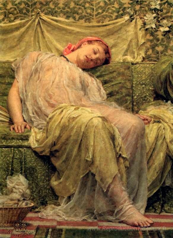 Nous vous proposons une reproduction artisanale sur toile du célèbre tableau 'Un workbasket' de Albert Joseph Moore, provenant du Musée de la Reproduction.