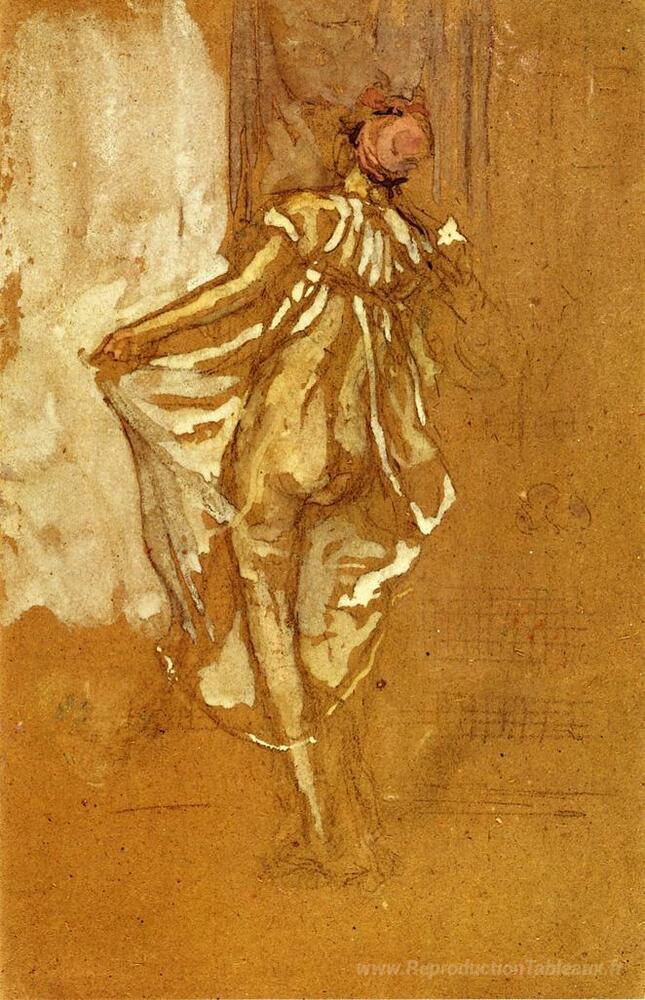 Nous vous proposons une reproduction artisanale sur toile du célèbre tableau 'Une femme dansante dans une robe rose vue de l'arrière' de James McNeill Whistler, provenant du Musée de la Reproduction.