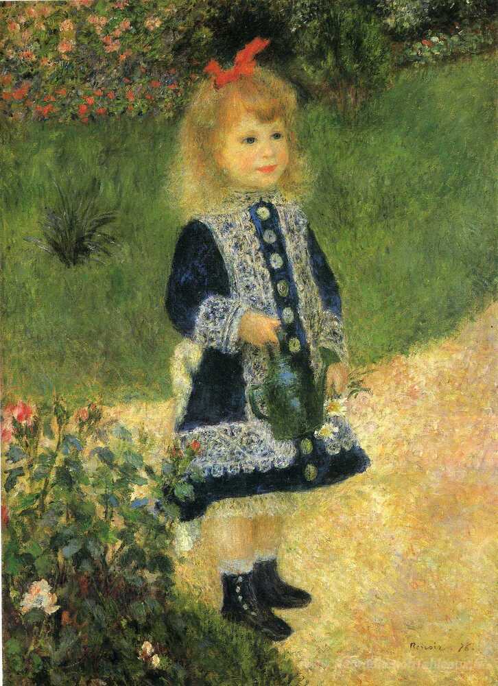 Nous vous proposons une reproduction artisanale sur toile du célèbre tableau 'Une fille avec un arrosage peut' de Pierre-Auguste Renoir, provenant du Musée de la Reproduction.