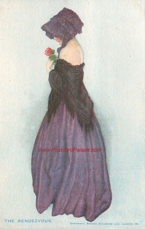 Nous vous proposons une reproduction artisanale sur toile du célèbre tableau 'Une fille tenant une rose' de Raphael Kirchner, provenant du Musée de la Reproduction.