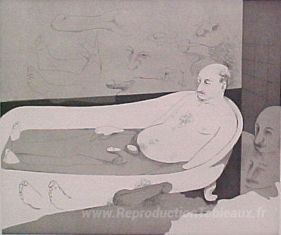 Nous vous proposons une reproduction artisanale sur toile du célèbre tableau 'Une fleur flottante languissante' de Richard Hamilton, provenant du Musée de la Reproduction.