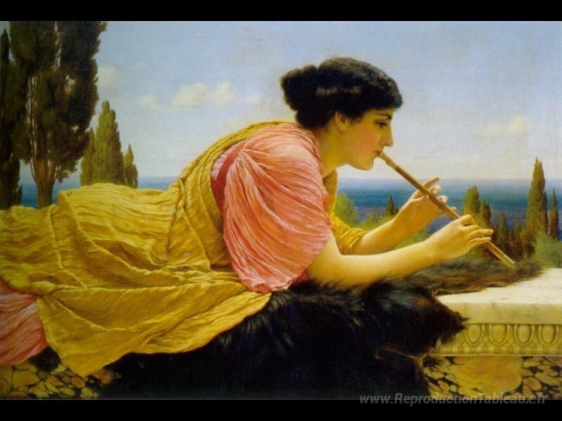 Nous vous proposons une reproduction artisanale sur toile du célèbre tableau 'Une mélodie' de John William Godward, provenant du Musée de la Reproduction.