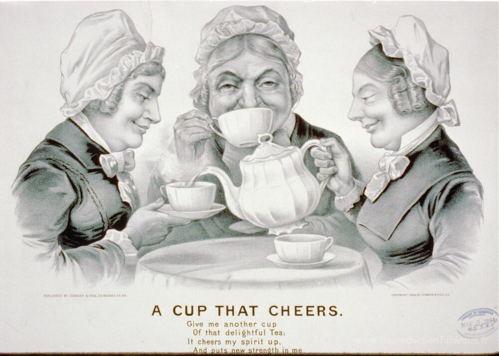 Nous vous proposons une reproduction artisanale sur toile du célèbre tableau 'Une tasse qui encourage' de Currier and Ives, provenant du Musée de la Reproduction.