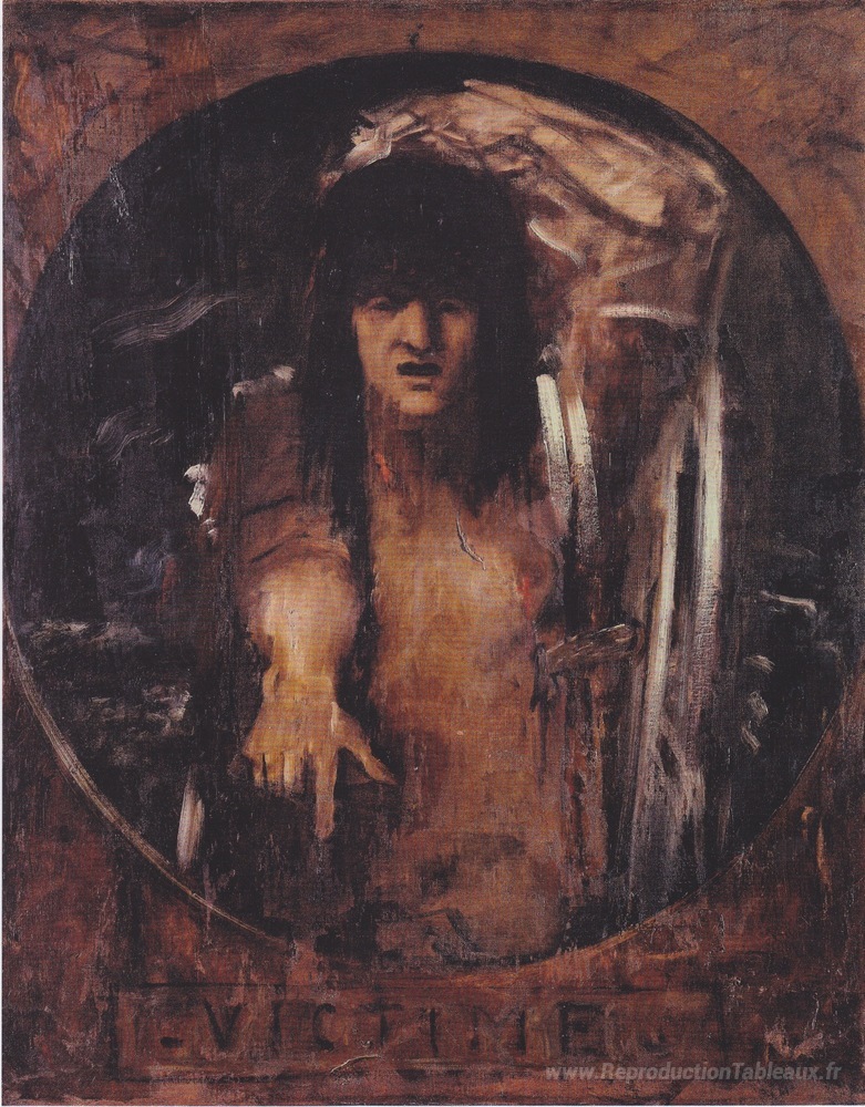 Nous vous proposons une reproduction artisanale sur toile du célèbre tableau 'Victime' de Gustave Moreau, provenant du Musée de la Reproduction.