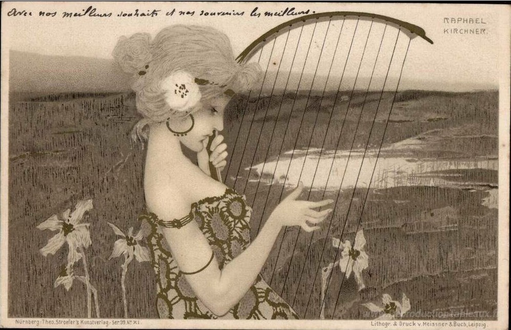 Nous vous proposons une reproduction artisanale sur toile du célèbre tableau 'Vierges grecques' de Raphael Kirchner, provenant du Musée de la Reproduction.