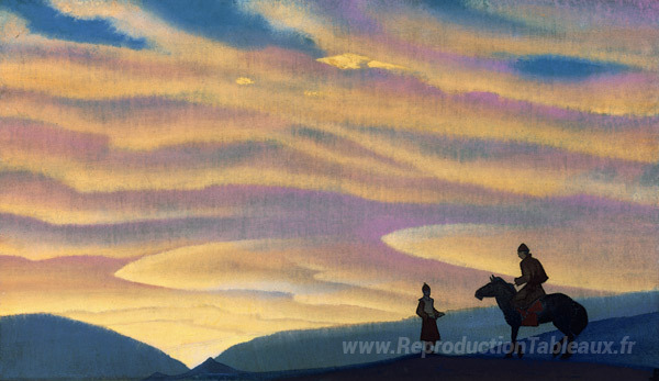 Nous vous proposons une reproduction artisanale sur toile du célèbre tableau 'Voix de la Mongolie' de Nicholas Roerich, provenant du Musée de la Reproduction.