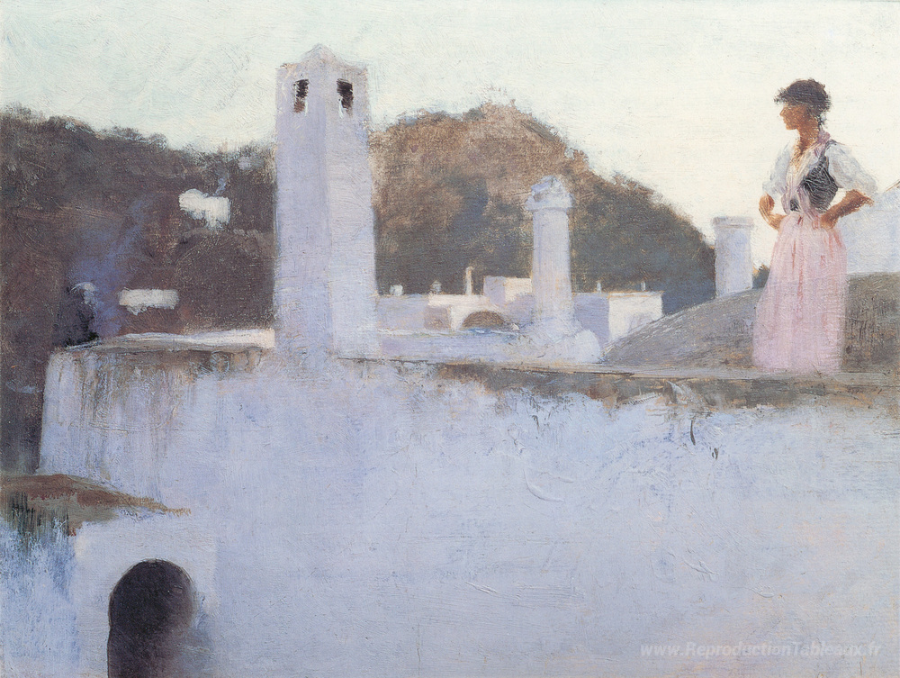 Nous vous proposons une reproduction artisanale sur toile du célèbre tableau 'Vue de capri' de John Singer Sargent, provenant du Musée de la Reproduction.