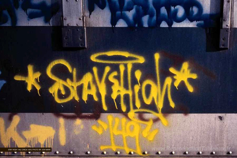 Nous vous proposons une reproduction artisanale sur toile du célèbre tableau 'Étiqueter' de Stay High 149, provenant du Musée de la Reproduction.