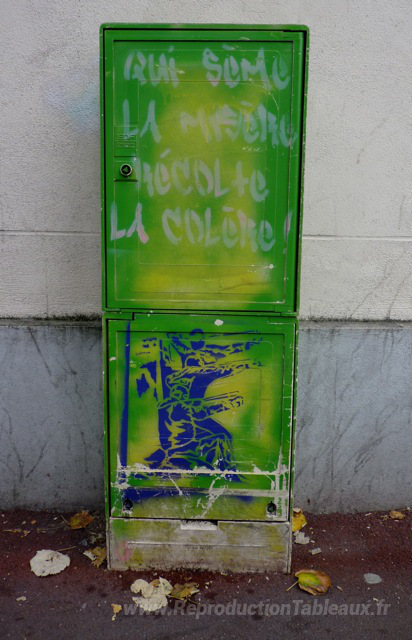Nous vous proposons une reproduction artisanale sur toile du célèbre tableau '89 avenue Paul Vaillant Couturier' de Epsylon Point, provenant du Musée de la Reproduction.