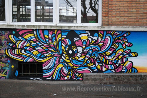 Nous vous proposons une reproduction artisanale sur toile du célèbre tableau 'Ecole Romain Rollan - Les Lilas, Francia' de Speedy Graphito, provenant du Musée de la Reproduction.
