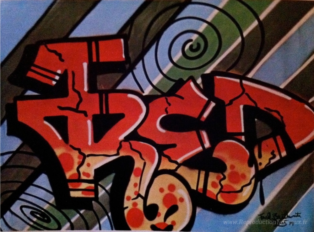 Nous vous proposons une reproduction artisanale sur toile du célèbre tableau 'Fred' de Fab 5 Freddy, provenant du Musée de la Reproduction.
