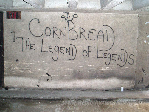 Nous vous proposons une reproduction artisanale sur toile du célèbre tableau 'La légende des légendes' de Cornbread, provenant du Musée de la Reproduction.
