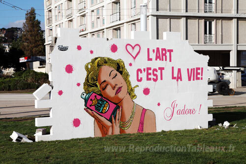 Nous vous proposons une reproduction artisanale sur toile du célèbre tableau 'Mettere Océane, Le Havre' de Speedy Graphito, provenant du Musée de la Reproduction.