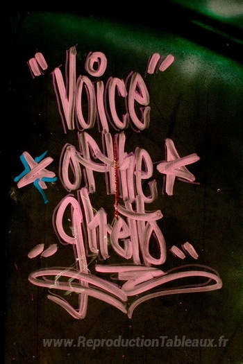 Nous vous proposons une reproduction artisanale sur toile du célèbre tableau 'Voix du ghetto' de Stay High 149, provenant du Musée de la Reproduction.