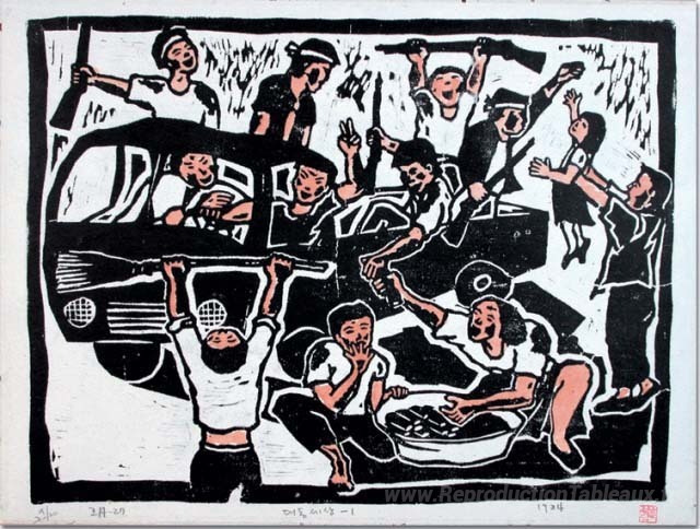 Nous vous proposons une reproduction artisanale sur toile du célèbre tableau '27 mai-daedong Sesang' de Hong Song-dam, provenant du Musée de la Reproduction.
