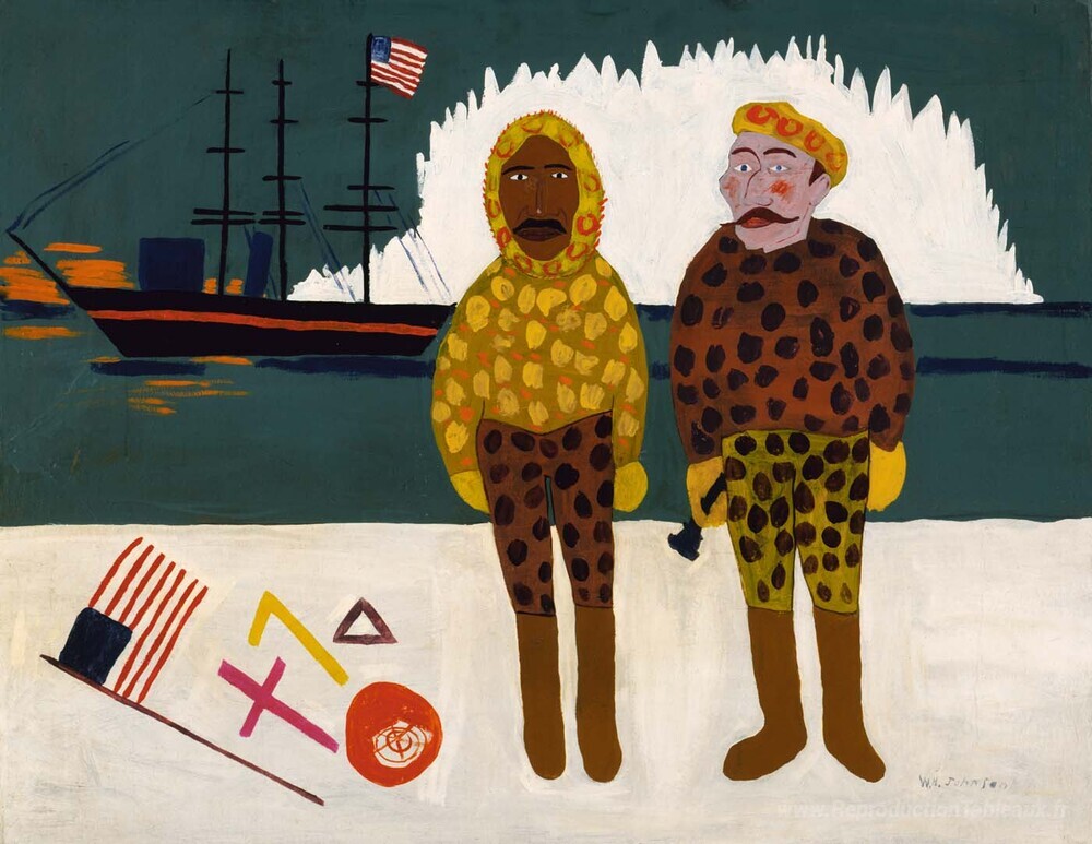 Bienvenue dans notre collection de reproductions de peintures à l'huile, où l'art s'invite dans votre intérieur pour créer une atmosphère unique et raffinée. Parmi nos trésors artistiques, nous vous proposons l'œuvre captivante Commodore Peary et Henson au pôle Nord, réalisée par l'éminent artiste américain William H. Johnson. Ce tableau, emblématique de son style audacieux et coloré, illustre avec brio l'esprit d'exploration et de découverte des pôles.