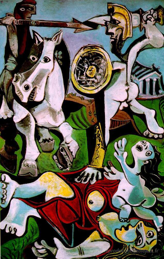 Nous vous proposons une reproduction artisanale sur toile du célèbre tableau 'L'abduction de sabines' de Pablo Picasso, provenant du Musée de la Reproduction.
