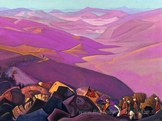 Nous vous proposons une reproduction artisanale sur toile du célèbre tableau 'Mongolie (Campagne de Gengis Khan)' de Nicholas Roerich, provenant du Musée de la Reproduction.