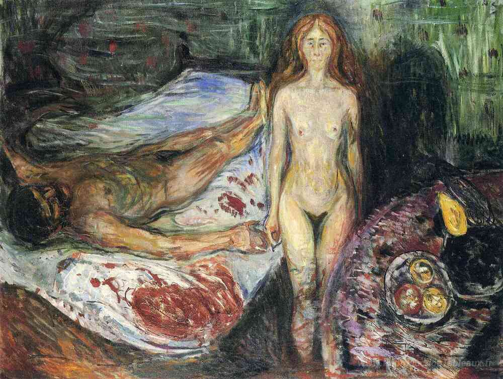 Nous vous proposons une reproduction artisanale sur toile du célèbre tableau 'Mort de Marat I' de Edvard Munch, provenant du Musée de la Reproduction.