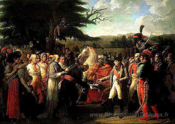 Nous vous proposons une reproduction artisanale sur toile du célèbre tableau 'Napoléon reçoit les clés de Vienne' de Jean Auguste Dominique Ingres, provenant du Musée de la Reproduction.