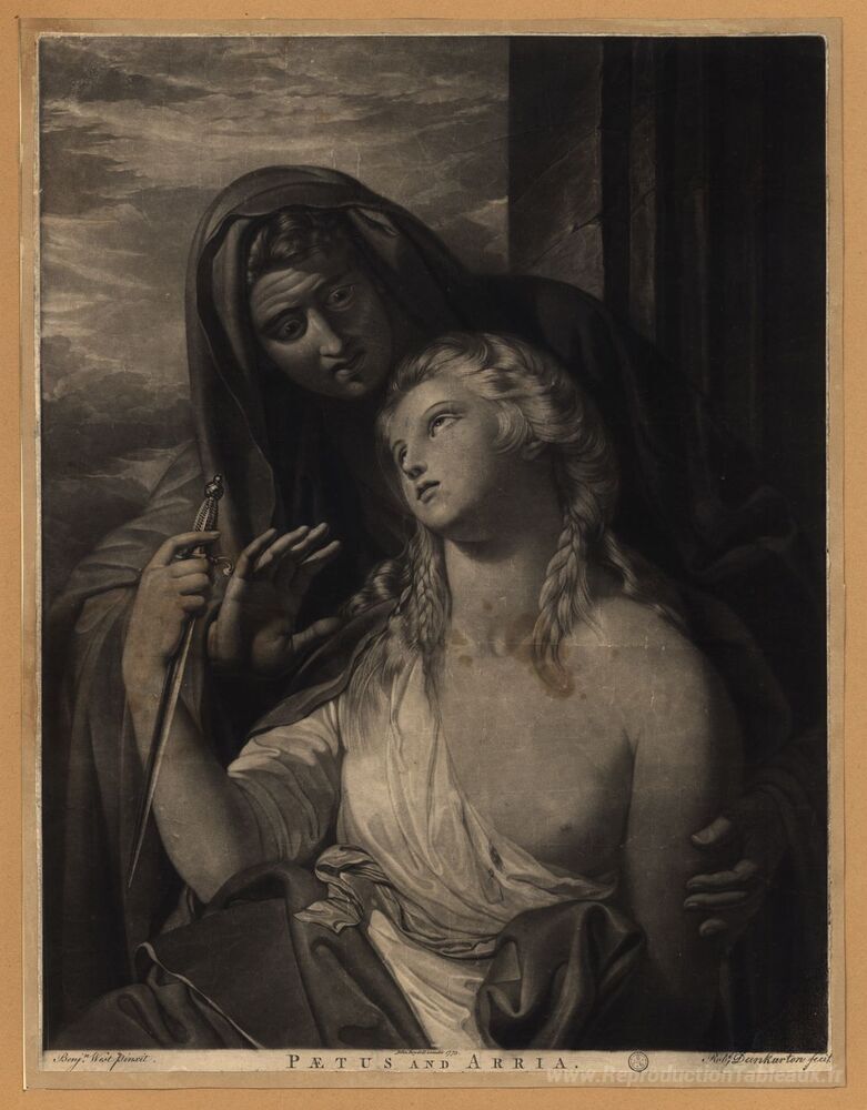 Les œuvres de Benjamin West sont non seulement un ajout esthétique, mais elles transforment également votre espace de vie en un véritable musée. Chaque reproduction est réalisée avec soin, capturant la richesse des couleurs et la texture des coups de pinceau, permettant ainsi d'apprécier pleinement la beauté de l'art classique. Offrez-vous une expérience visuelle inégalée et ajoutez une touche de sophistication à votre intérieur grâce à nos exquises reproductions de Paetus et Arria.