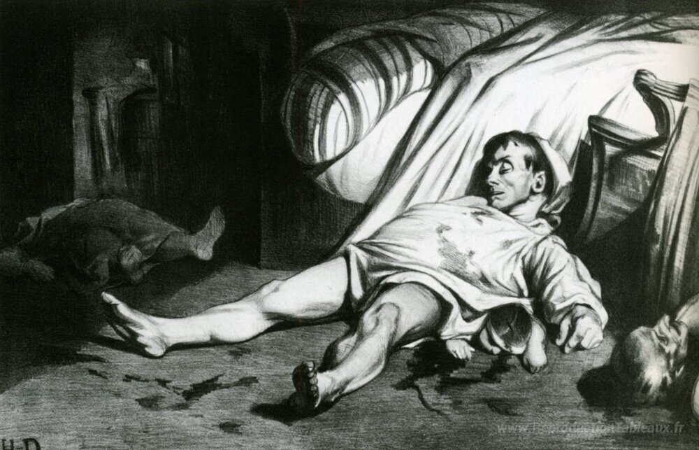 Nous vous proposons une reproduction artisanale sur toile du célèbre tableau 'Rue Transnon' de Honore Daumier, provenant du Musée de la Reproduction.