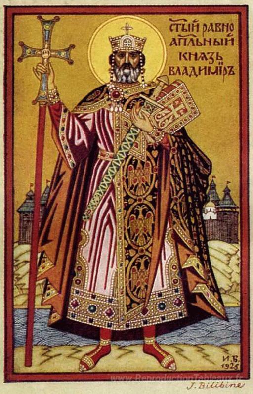 Nous vous proposons une reproduction artisanale sur toile du célèbre tableau 'Saint-prince Vladimir' de Ivan Bilibin, provenant du Musée de la Reproduction.