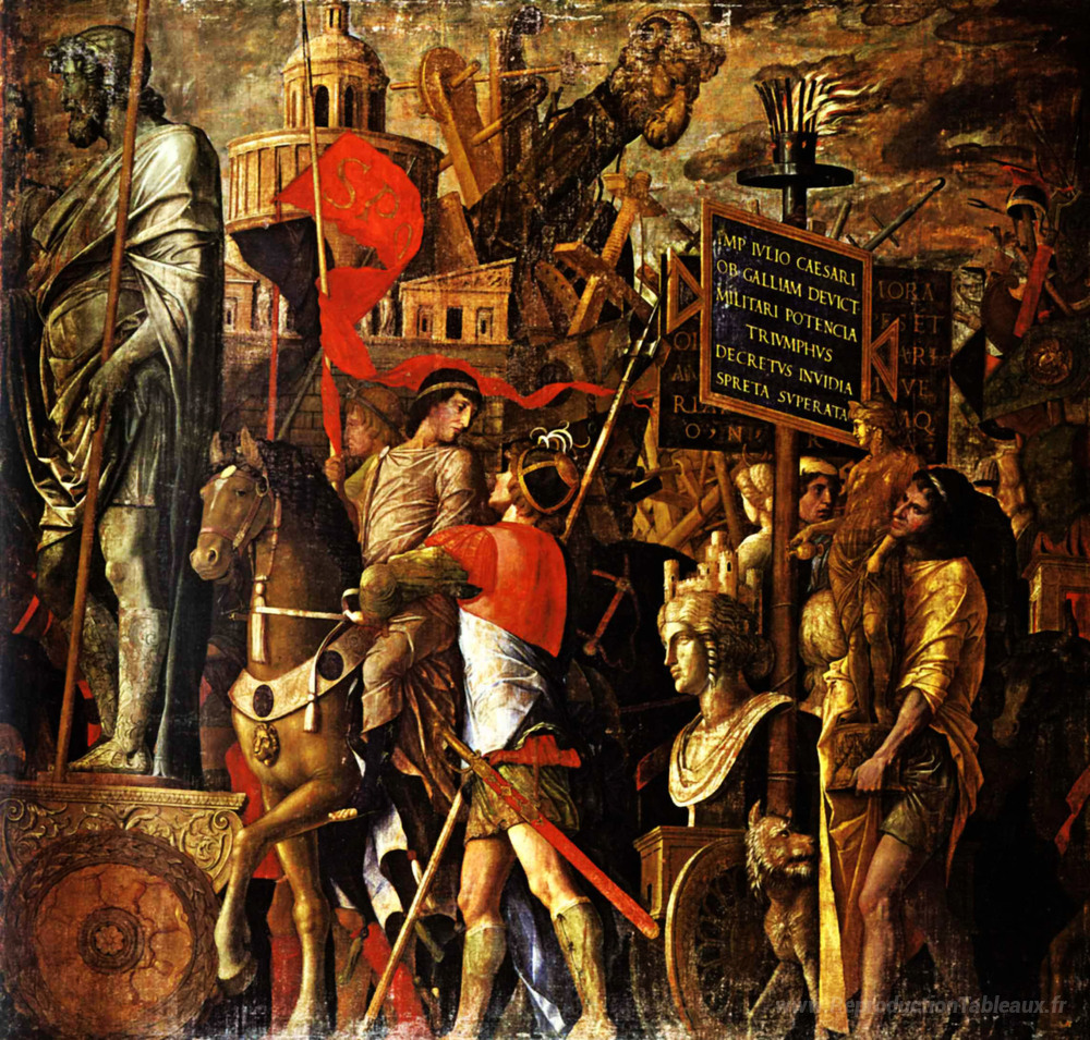 Découvrez l’univers fascinant des peintures à l’huile avec notre collection de reproductions d'œuvres d'art, où chaque pièce est le reflet de l'excellence artistique. Parmi nos trésors, nous vous proposons Statues capturées et équipement de siège de l'illustre Andrea Mantegna. Cet artiste de la Renaissance est reconnu pour sa maîtrise technique et son sens aigu du détail, qui s'entrelacent harmonieusement dans cette œuvre captivante.