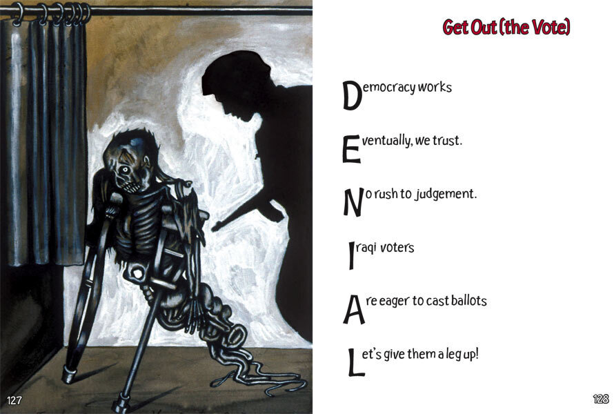 Nous vous proposons une reproduction artisanale sur toile du célèbre tableau 'Électeur' de Sue Coe, provenant du Musée de la Reproduction.