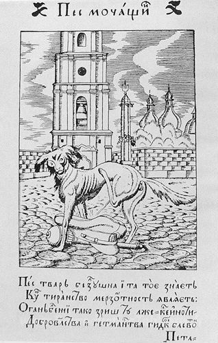 Nous vous proposons une reproduction artisanale sur toile du célèbre tableau 'Chien urinant' de Heorhiy Narbut, provenant du Musée de la Reproduction.