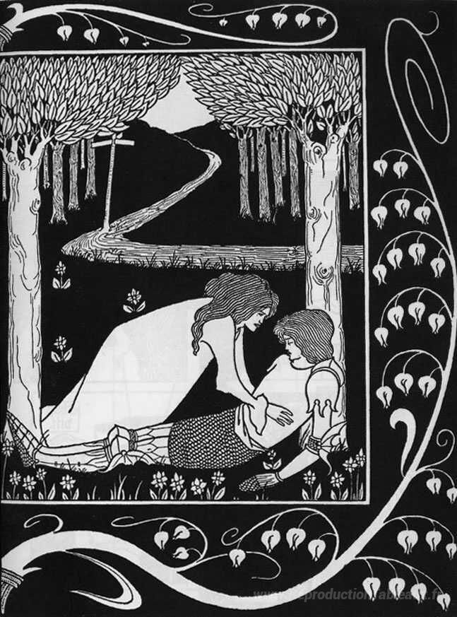 Nous vous proposons une reproduction artisanale sur toile du célèbre tableau 'Comment Sir Launcelot était connu par Dame Elaine II' de Aubrey Beardsley, provenant du Musée de la Reproduction.