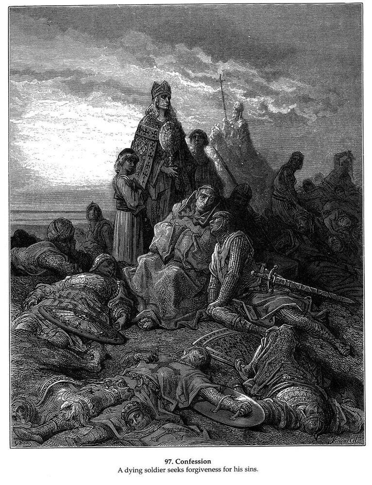 Nous vous proposons une reproduction artisanale sur toile du célèbre tableau 'Confessione' de Gustave Dore, provenant du Musée de la Reproduction.