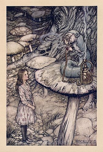 Nous vous proposons une reproduction artisanale sur toile du célèbre tableau 'Conseils d'une chenille' de Arthur Rackham, provenant du Musée de la Reproduction.