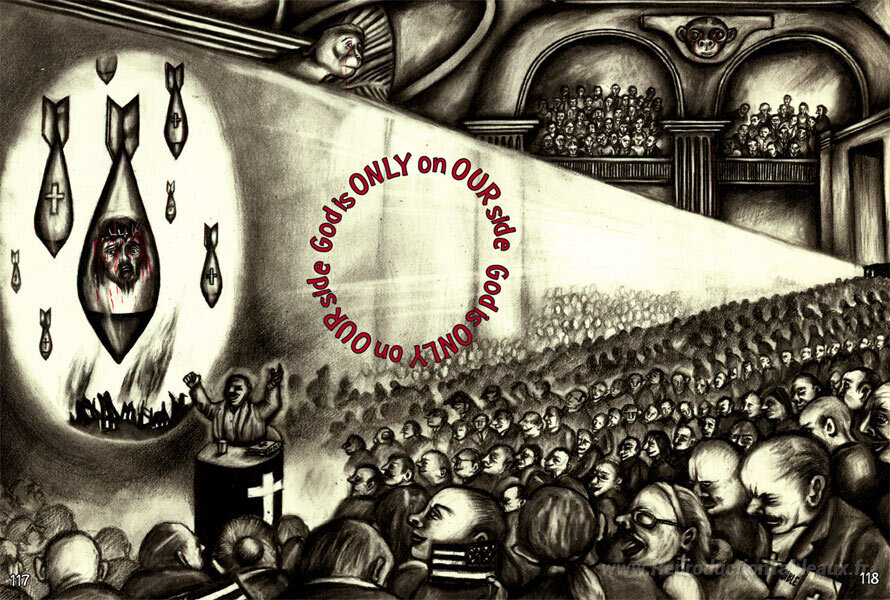Nous vous proposons une reproduction artisanale sur toile du célèbre tableau 'Dieu' de Sue Coe, provenant du Musée de la Reproduction.