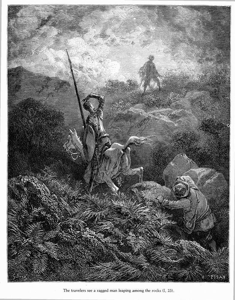 Nous vous proposons une reproduction artisanale sur toile du célèbre tableau 'don Quichotte' de Gustave Dore, provenant du Musée de la Reproduction.
