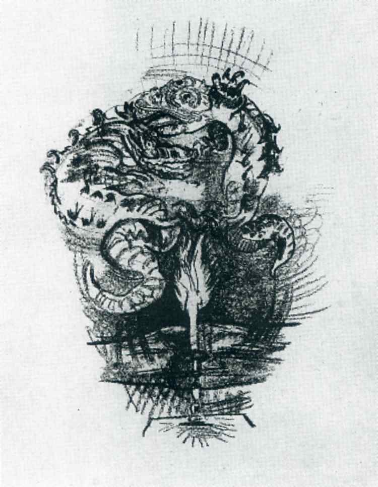 Nous vous proposons une reproduction artisanale sur toile du célèbre tableau 'Dragons sur une flamme' de Oskar Kokoschka, provenant du Musée de la Reproduction.