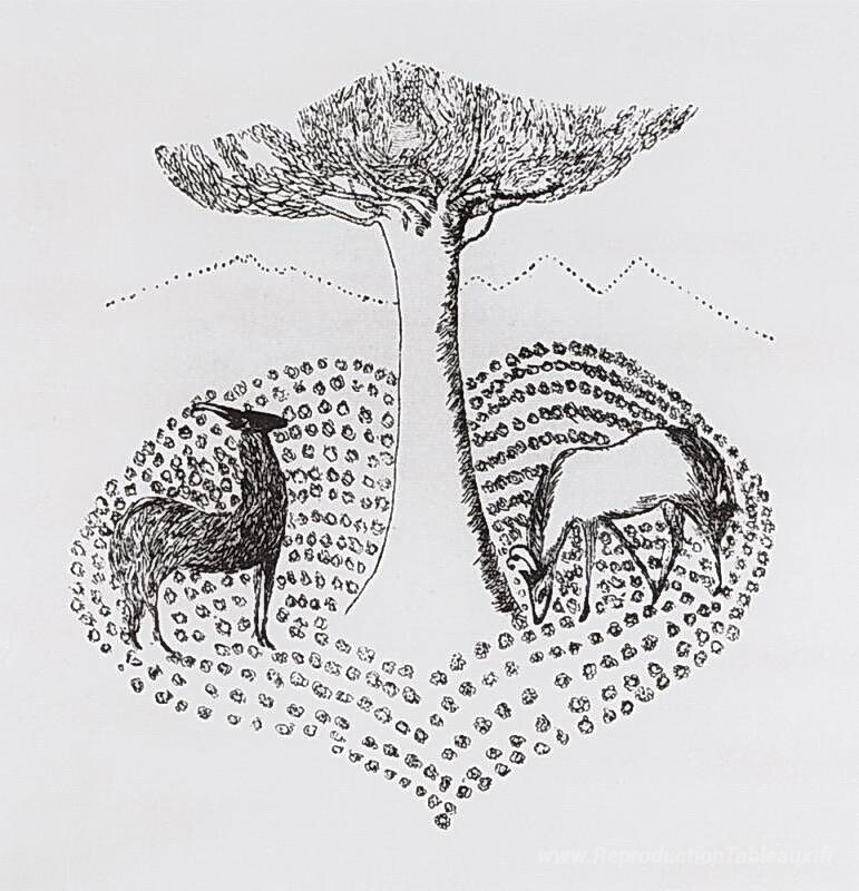 Nous vous proposons une reproduction artisanale sur toile du célèbre tableau 'Gazelles près de l'arbre' de Martiros Saryan, provenant du Musée de la Reproduction.