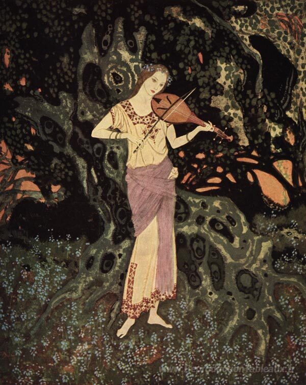 Nous vous proposons une reproduction artisanale sur toile du célèbre tableau 'Hors de ce monde (voleurs de lumière par la reine de Roumanie)' de Edmund Dulac, provenant du Musée de la Reproduction.
