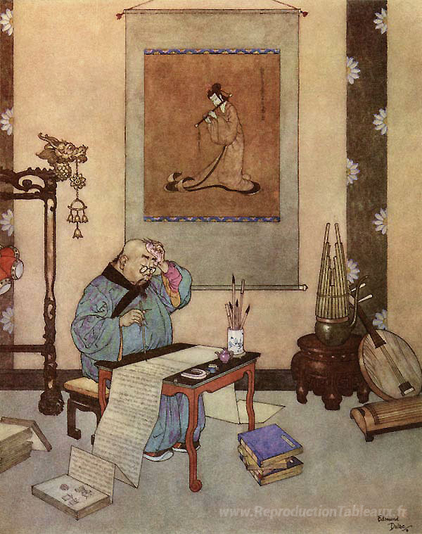 Nous vous proposons une reproduction artisanale sur toile du célèbre tableau 'Il Master Music - The Nightingale' de Edmund Dulac, provenant du Musée de la Reproduction.