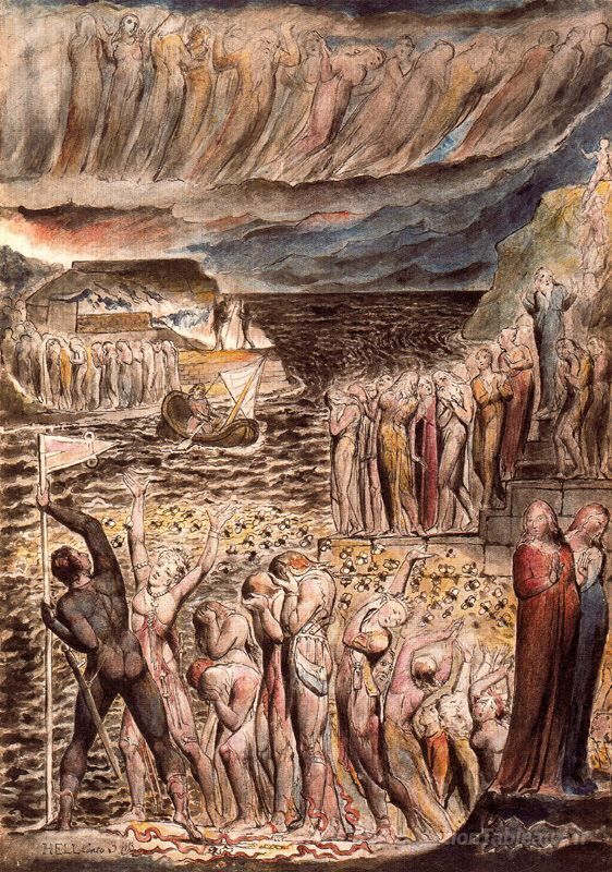 Nous vous proposons une reproduction artisanale sur toile du célèbre tableau 'Illustration à la comédie divine de Dante, Hell' de William Blake, provenant du Musée de la Reproduction.
