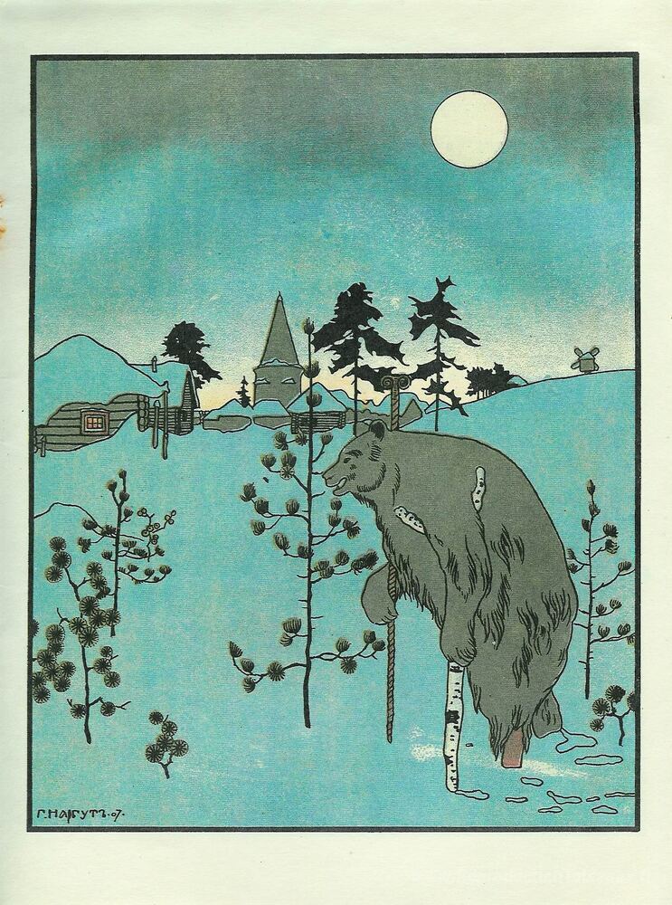 Nous vous proposons une reproduction artisanale sur toile du célèbre tableau 'Illustration à «la grue et le héron. Ours.'' de Heorhiy Narbut, provenant du Musée de la Reproduction.