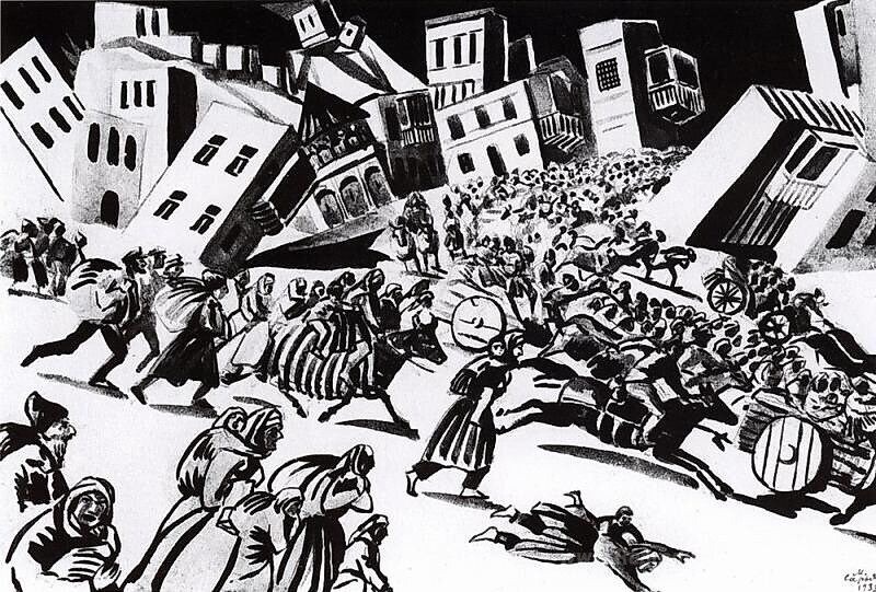 Nous vous proposons une reproduction artisanale sur toile du célèbre tableau 'Illustration à "Pays of Nairi" de Yeghishe Charing - Évasion de ' de Martiros Saryan, provenant du Musée de la Reproduction.