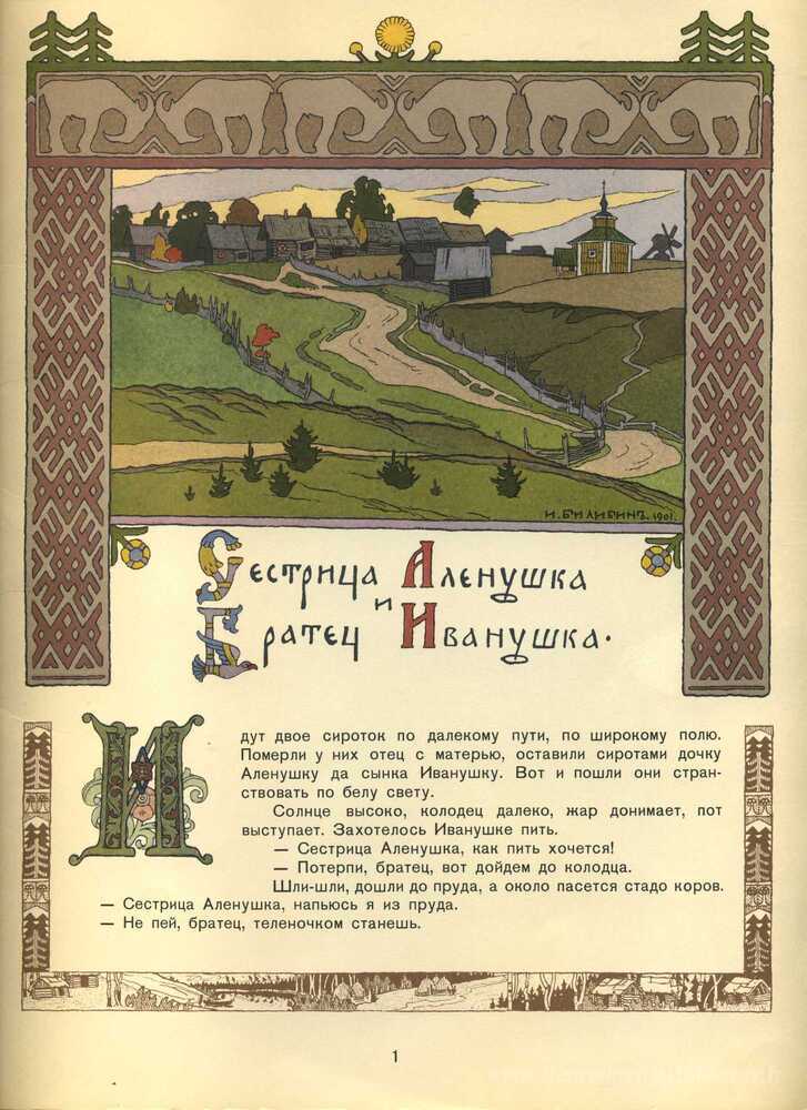 Nous vous proposons une reproduction artisanale sur toile du célèbre tableau 'Illustration de l'histoire de la fée russe "Sœur Alyonushka et f' de Ivan Bilibin, provenant du Musée de la Reproduction.