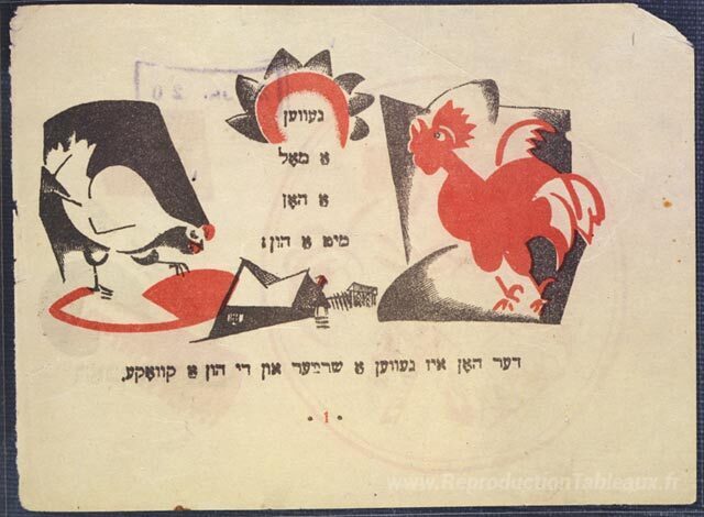 Nous vous proposons une reproduction artisanale sur toile du célèbre tableau 'Illustration d'El Lissitzky à «la poule qui voulait un peigne»' de El Lissitzky, provenant du Musée de la Reproduction.