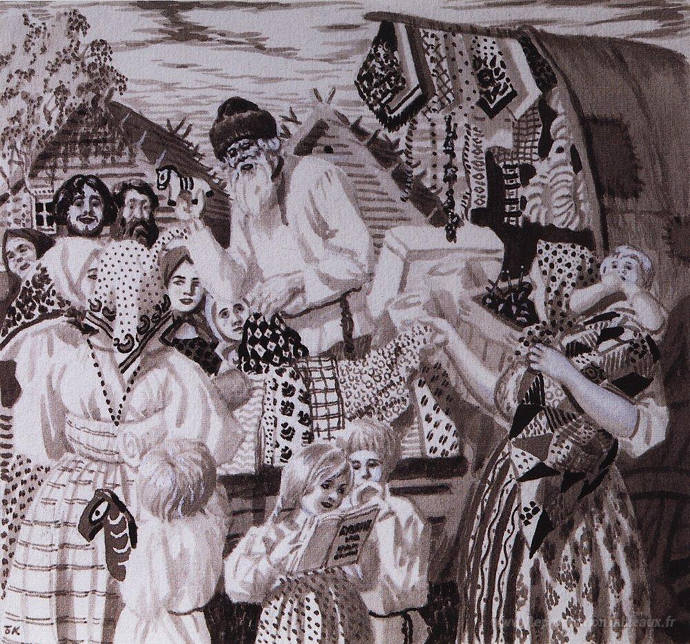 Nous vous proposons une reproduction artisanale sur toile du célèbre tableau 'Illustration du poème de Nikolay Nekrasov "Oncle Jacob"' de Boris Kustodiev, provenant du Musée de la Reproduction.
