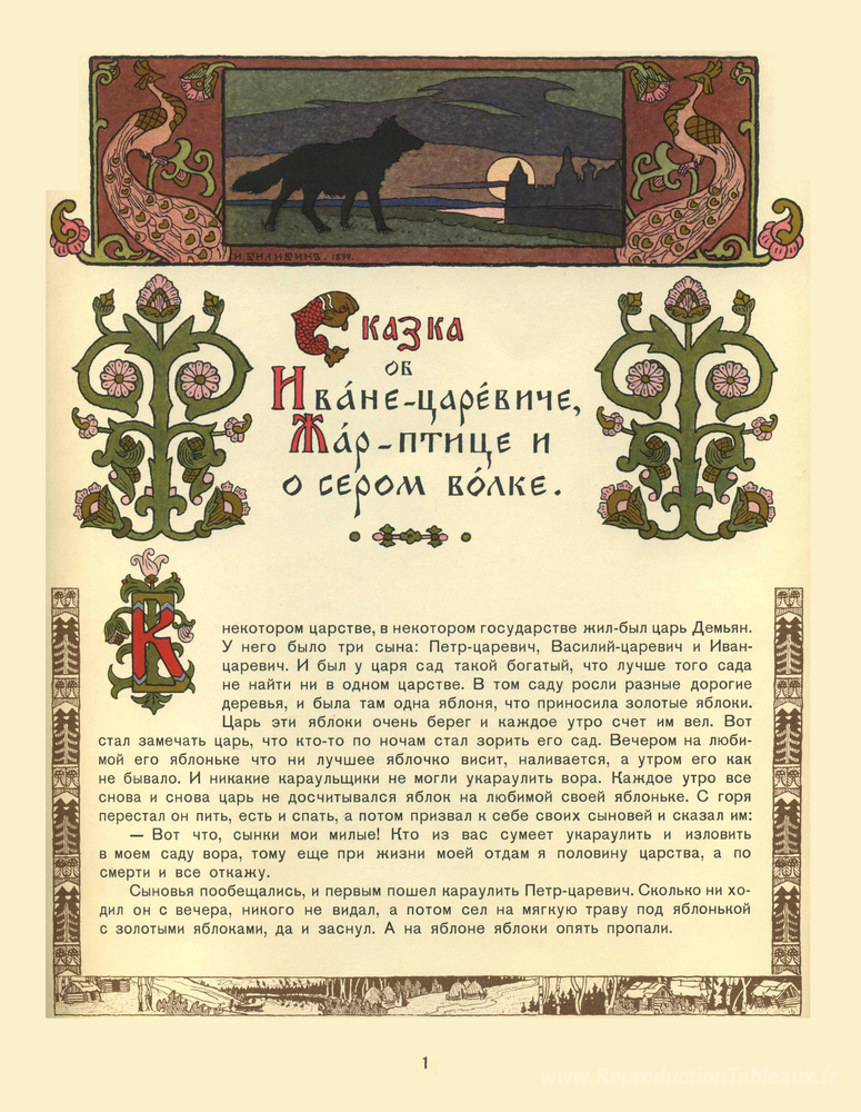 Nous vous proposons une reproduction artisanale sur toile du célèbre tableau 'Illustration pour l'histoire du prince Ivan, du Firebird et du l' de Ivan Bilibin, provenant du Musée de la Reproduction.
