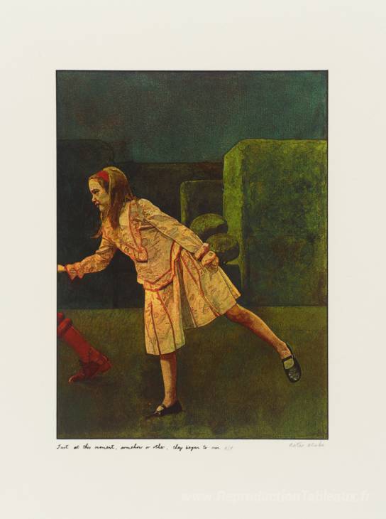Nous vous proposons une reproduction artisanale sur toile du célèbre tableau 'Juste à ce moment, d'une manière ou d'une autre, ils ont commenc' de Peter Blake, provenant du Musée de la Reproduction.