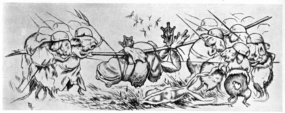 Nous vous proposons une reproduction artisanale sur toile du célèbre tableau 'Krigen Mellom Froskene Og Musene 12' de Theodor Severin Kittelsen, provenant du Musée de la Reproduction.