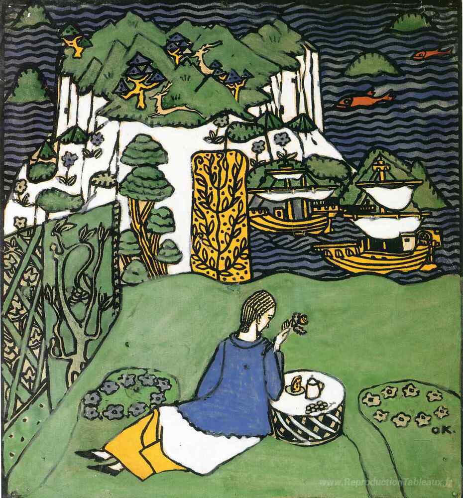 Nous vous proposons une reproduction artisanale sur toile du célèbre tableau 'L'île lointaine' de Oskar Kokoschka, provenant du Musée de la Reproduction.