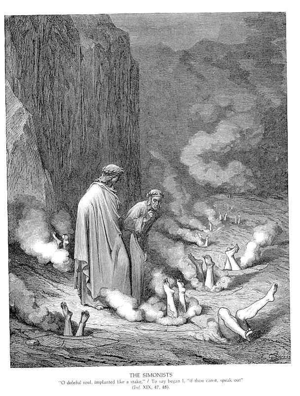 Nous vous proposons une reproduction artisanale sur toile du célèbre tableau 'La punition des simonistes' de Gustave Dore, provenant du Musée de la Reproduction.